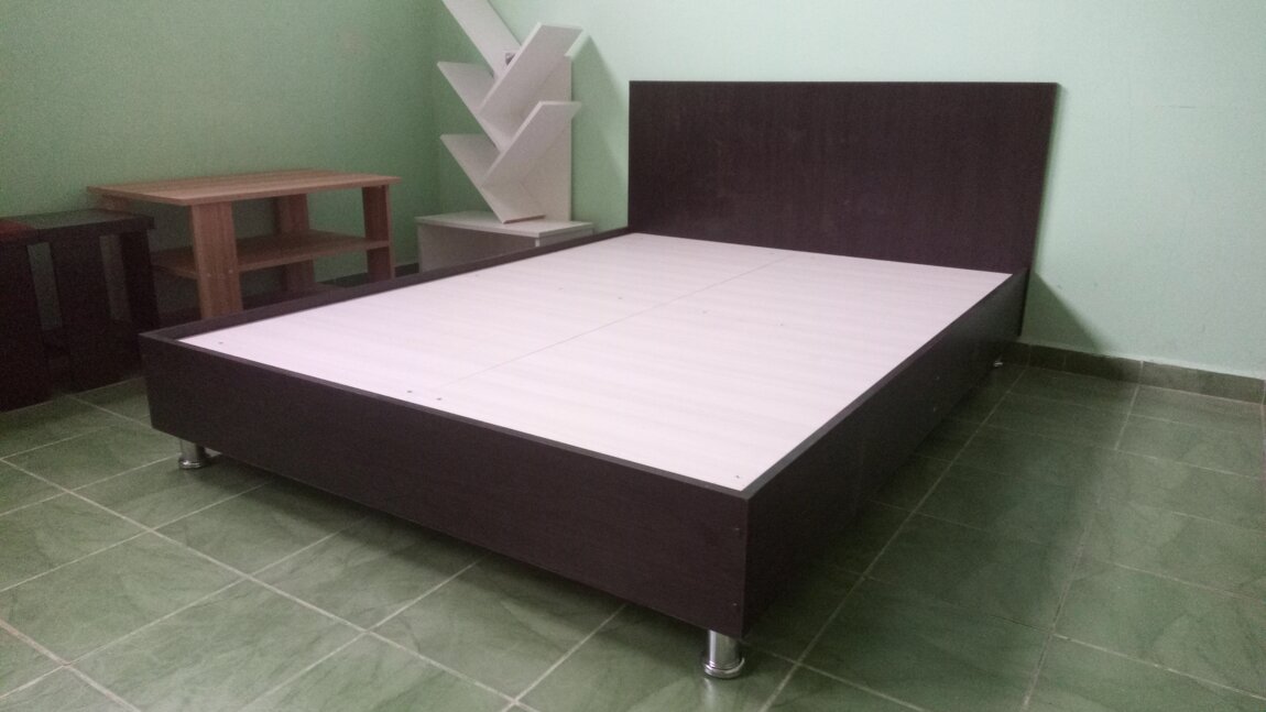 Кровати имеют пластиковую кромку на всех элементах и сплошное ЛДСП в качестве основания под матрац, что позволяет использовать для кровати матрац любой конструкции.