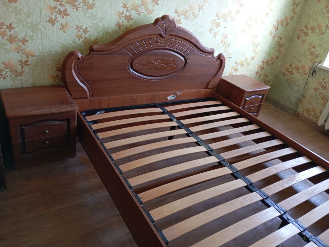 Продам двухспальную кровать без матраса с 2 тумбами
