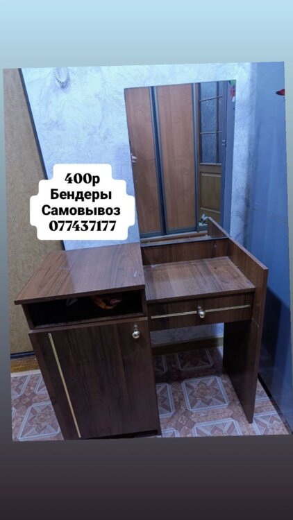 Продается удобный и компактный столик трюмо в классическом темном цвете (под дерево), который отлично впишется в интерьер спальни или прихожей.
