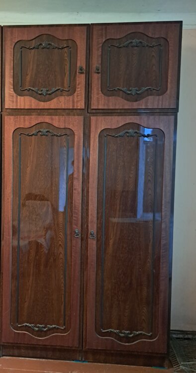● Мощный, большой и очень вместительный ШКАФ ДЛЯ ОДЕЖДЫ с антресолью от советской стенки Рельеф (Ширина 115, высота 231см). В одной половине усиленная штанга во второй кронштейн.