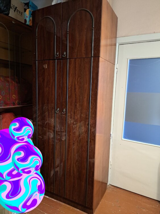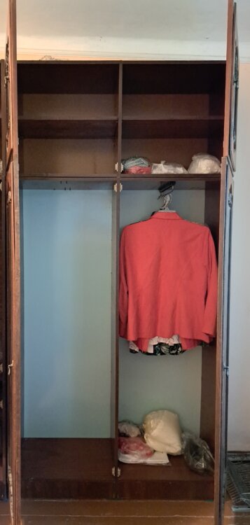 ● ШКАФ ДЛЯ ОДЕЖДЫ с антресолью от советской мебельной стенки Тигина, крепкий, вместительный. Антресоль со съёмной полкой, внизу штанга под плечики с одеждой. Ширина 88см, высота 230см. Возможен ОБМЕН на шкаф для посуды от стенки Тигина.