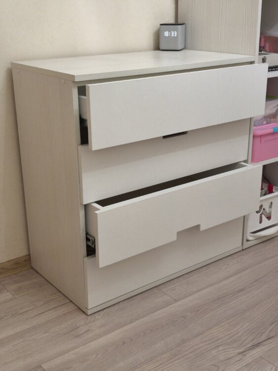 Комод в состоянии нового. Не побитый, не поцарапанный, выдвижные шкафчики не провисшие, всё работает как положено.
