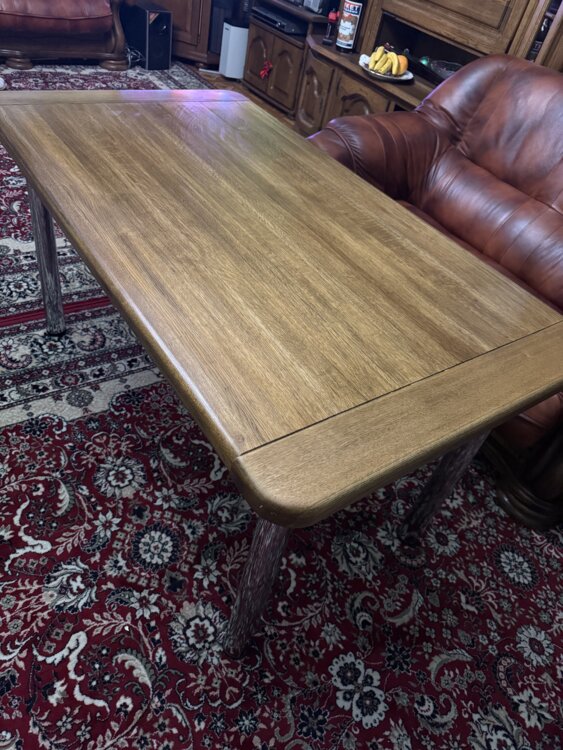 Качественный, массивный стол с натуральной дубовой поверхностью.