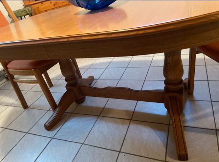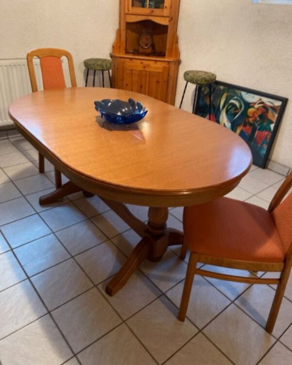 Продам деревянный стол и два стула, можно по отдельности. Размеры стола: длина 1.60 см, ширина 1м, высота 75 см. Стол раздвигается и увеличивается на 45 см