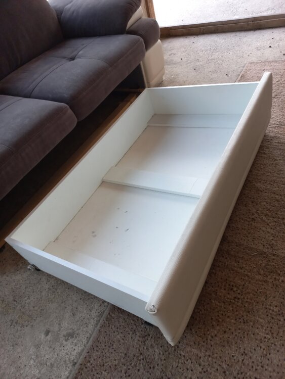 Угловой, раскладной, имеет ящик для хранения
