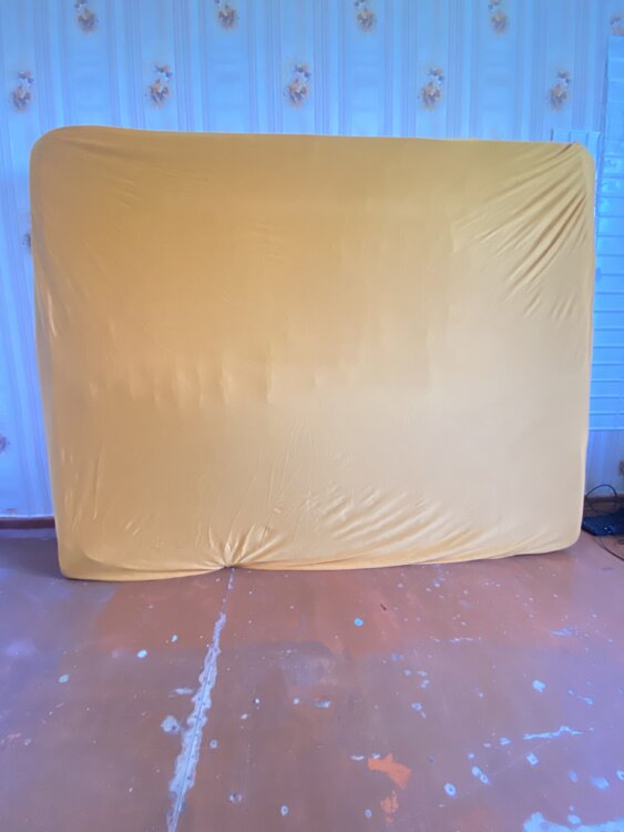 Постирали чехол от него, он стал меньше и торчит паралон с пружиной с одной стороны