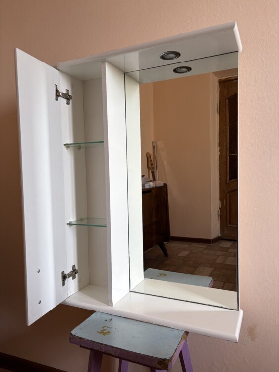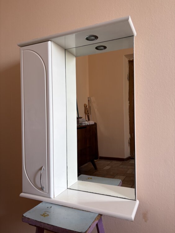 Продам, шкафчик навесной для ванной комнаты в хорошем состоянии, есть внизу небольшая потертость!