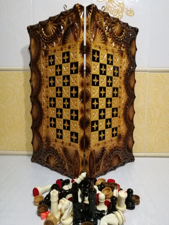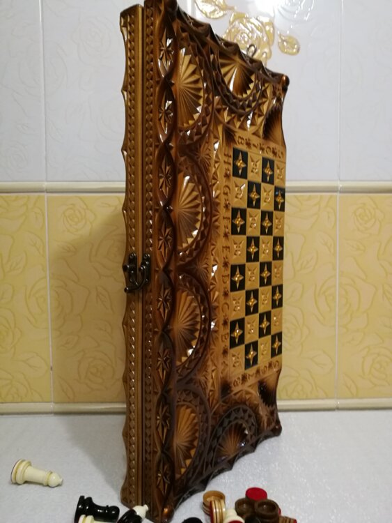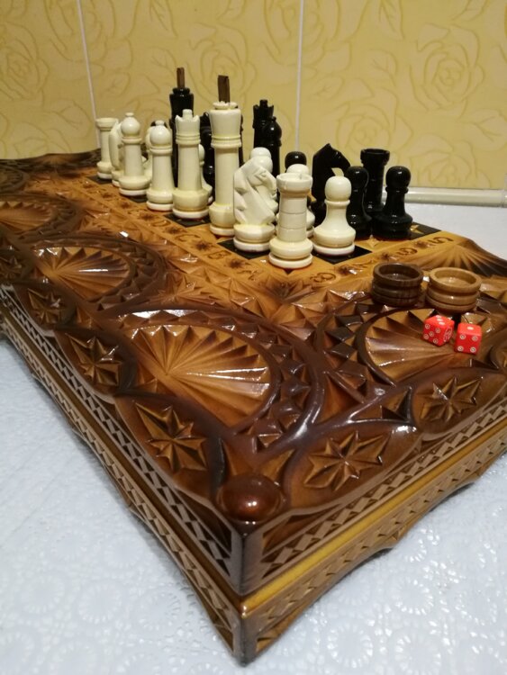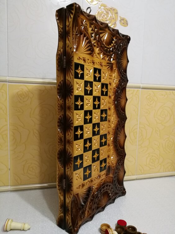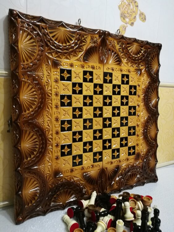 Нарды шахматы ручная резьба вырезанные техникой Геометрия со всех сторон и боков также и внутри нард на бортах есть резьба клетки поля вырезаны в форме звёзд нарды облагорожены чеканкой по дереву размер нард 60 на 60см фигурки и фишки ясень дуб кубики кость. Поиграл и повесил на стенку украсит любой интерьер и создаст уютную обстановку а не будут пылиться в углу Широкий выбор в наличии выбираете. Пишите звоните телеграм ватцап ваибер и мы вам поможем выбрать эксклюзивные нарды ручной резьбы а не дешёвую поделку вырезанные на станке выдающую за ручную резьбу!