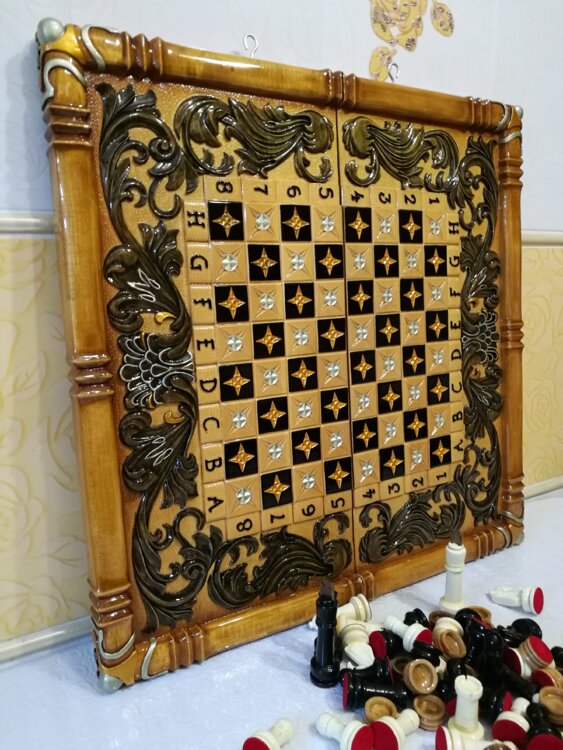 Нарды шахматы ручная резьба вырезанные со всех сторон и боков также и внутри нард на бортах есть резьба клетки поля вырезаны в форме звёзд цветные био лаки нарды облагорожены чеканкой по дереву размер нард 60 на 60см фигурки и фишки ясень дуб кубики кость. Поиграл и повесил на стенку украсит любой интерьер и создаст уютную обстановку а не будут пылиться в углу Широкий выбор в наличии выбирайте. Пишите звоните телеграм ватцап вайбер и мы вам поможем выбрать эксклюзивные нарды ручной резьбы а не дешевую поделку вырезанные на станке выдающую за ручную резьбу!