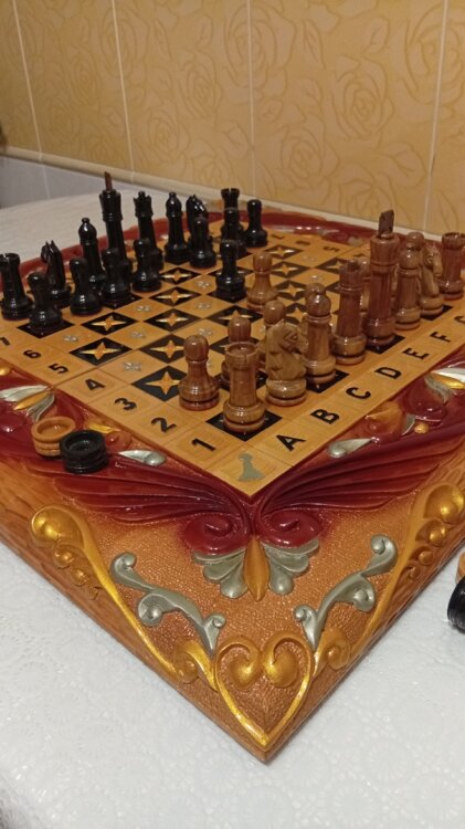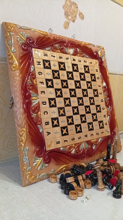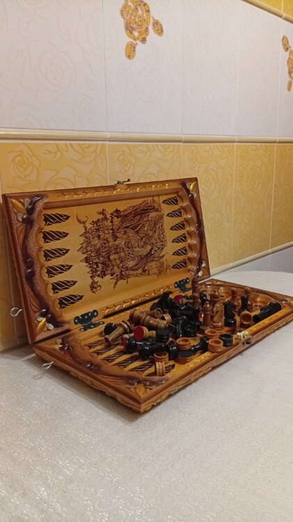 Нарды шахматы ручная резьба вырезанные со всех сторон и боков также и внутри нард на бортах есть резьба цветные био лаки клетки поля вырезаны в форме звёзд нарды облагорожены чеканкой по дереву размер нард 60 на 60см фигурки и фишки ясень дуб кубики кость. Поиграл и повесил на стенку украсит любой интерьер и создаст уютную обстановку а не будут пылиться в углу. Широкий выбор в наличии выбираите. Пишите звоните телеграм ватцап ваибер и мы вам поможем выбрать эксклюзивные нарды ручной резьбы а не дешевую поделку вырезанные на станке выдающую за ручную резьбу!