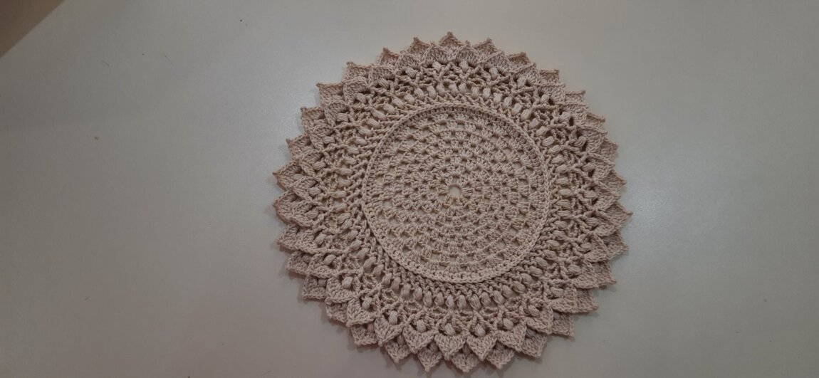 Салфетки для сервировки вязаные, бежевые, из хлопковой пряжи.