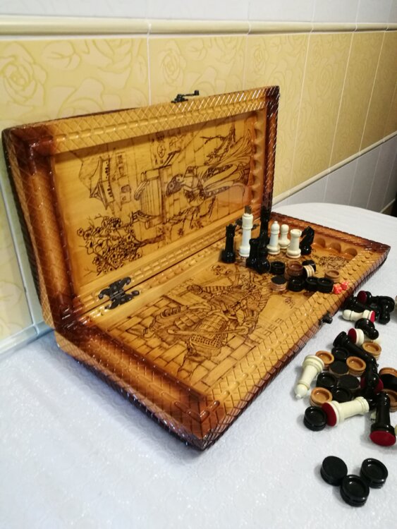 У нас цены от 5тыс лей выбирайте. Нарды шахматы ручная резьба вырезанные из Дикой Черешни со всех сторон и боков также и внутри нард на бортах есть резьба цветные клетки поля вырезаны в форме звёзд нарды облагорожены чеканкой по дереву размер нард 60 на 60см фигурки и фишки ясень дуб кубики кость. Поиграл и повесил на стенку украсит любой интерьер и создаст уютную обстановку а не будут пылиться в углу. Широкий выбор в наличии выбирайте. Пишите звоните телеграм ватцап вайбер и мы вам поможем выбрать эксклюзивные нарды ручной резьбы!