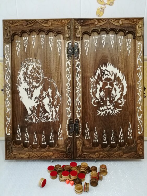 Нарды ореховые не боятся воды и солнца технология изготовления позволяет использовать всепогодно нарды ручная резьба вырезанные из Чёрного ореха со всех сторон и боков также и внутри нард на бортах есть резьба всё белое аппликация из кости нарды пропитаны воском и канифолью по стариной технологии Вечные нарды облагорожены чеканкой по дереву размер нард 60 на 60см фишки Двухцветный орех кубики кость. Поиграл и повесил на стенку украсит любой интерьер и создаст уютную обстановку а не будут пылиться в углу. Широкий выбор в наличии выбирайте. Пишите звоните телеграм ватцап вайбер и мы вам поможем выбрать эксклюзивные нарды ручной резьбы!