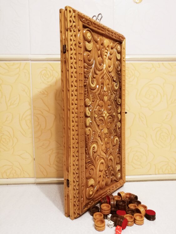 У нас цены от 5тыс лей выбирайте. Нарды ореховые ручная резьба вырезанные со всех сторон и боков также и внутри нард на бортах есть резьба всё белое аппликация из кости размер нард 55 на 55см фишки Двухцветный орех кубики кость. Поиграл и повесил на стенку украсит любой интерьер и создаст уютную обстановку а не будут пылиться в углу. Широкий выбор в наличии выбирайте. Пишите звоните телеграм ватцап вайбер и мы вам поможем выбрать эксклюзивные нарды ручной резьбы!