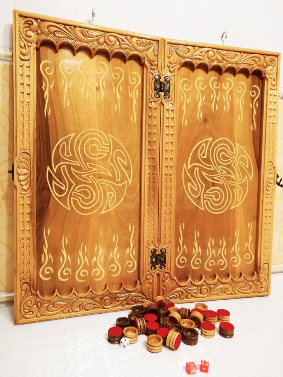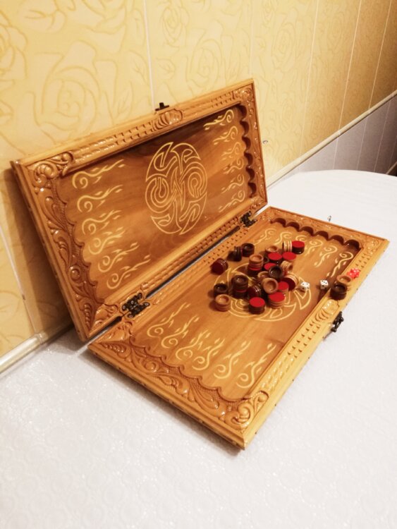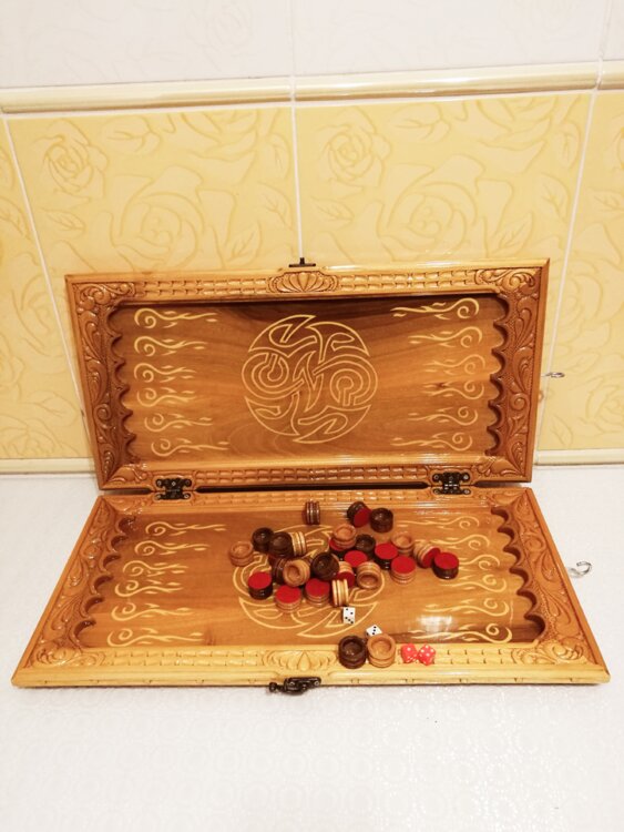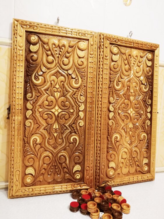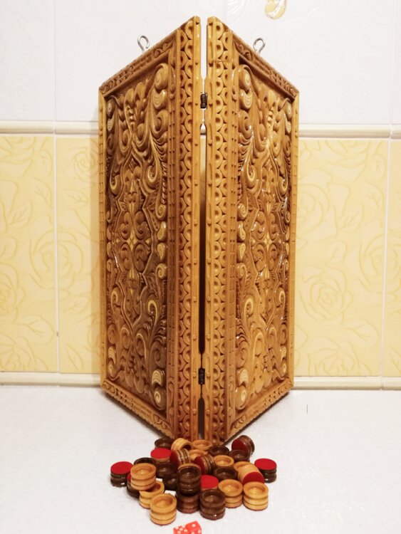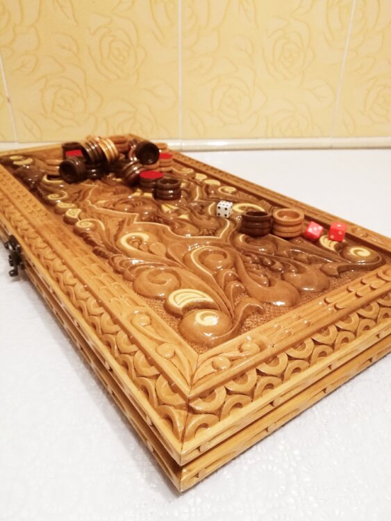 Нарды ореховые ручная резьба вырезанные со всех сторон и боков также и внутри нард на бортах есть резьба всё белое аппликация из кости нарды облагорожены чеканкой по дереву размер нард 55 на 55см фишки Двухцветный орех кубики кость. Поиграл и повесил на стенку украсит любой интерьер и создаст уютную обстановку а не будут пылиться в углу. Широкий выбор в наличии выбираете. Пишите звоните телеграм ватцап ваибер и мы вам поможем выбрать эксклюзивные нарды ручной резьбы а не дешёвую поделку вырезанные на станке выдающую за ручную резьбу!