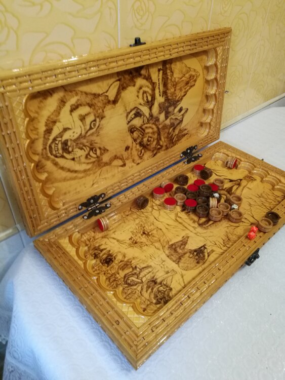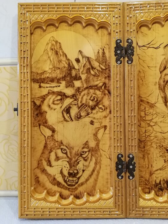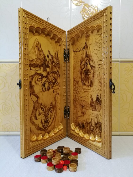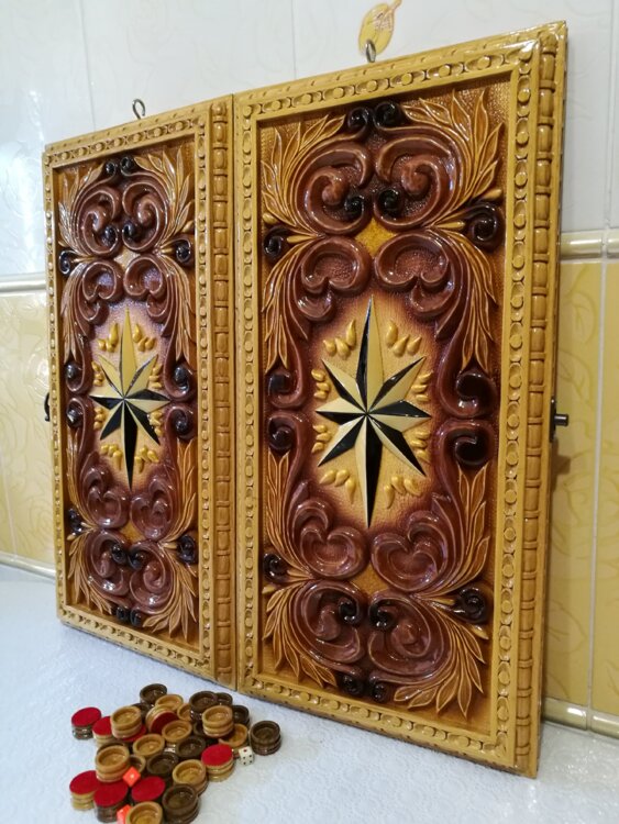 Нарды ручная резьба вырезанные со всех сторон и боков также и внутри нард на бортах есть резьба цветные био лаки нарды облагорожены чеканкой по дереву размер нард 60 на 60см фишки ясень дуб кубики кость. Поиграл и повесил на стенку украсит любой интерьер и создаст уютную обстановку а не будут пылиться в углу. Широкий выбор в наличии выбираете. Пишите звоните телеграм ватцап ваибер и мы вам поможем выбрать эксклюзивные нарды ручной резьбы а не дешёвую поделку вырезанные на станке выдающую за ручную резьбу!
