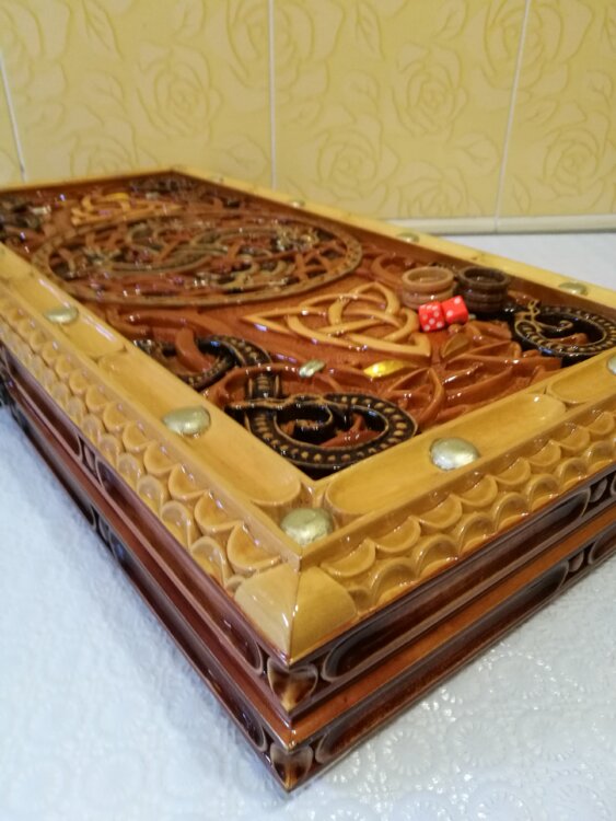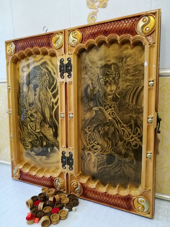 Нарды ручная резьба вырезанные со всех сторон и боков также и внутри нард на бортах есть резьба цветные био лаки нарды облагорожены чеканкой по дереву размер нард 60 на 60см фишки ясень дуб кубики кость. Поиграл и повесил на стенку украсит любой интерьер и создаст уютную обстановку а не будут пылиться в углу. Широкий выбор в наличии выбирайте. Пишите звоните телеграм ватцап вайбер и мы вам поможем выбрать эксклюзивные нарды ручной резьбы а не дешевую поделку вырезанные на станке выдающую за ручную резьбу!