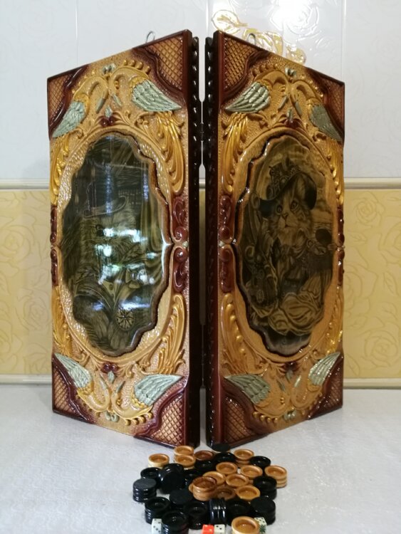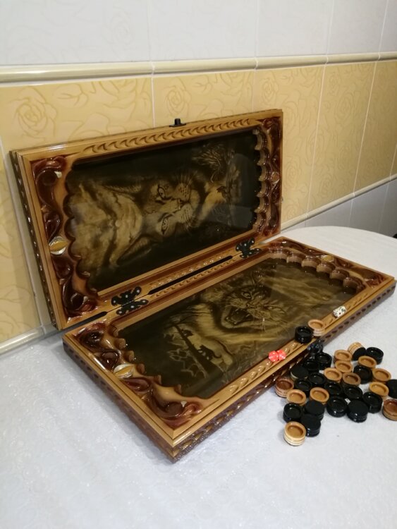 Нарды ручная резьба вырезанные со всех сторон и боков также и внутри нард на бортах есть резьба цветные био лаки рисунки выполнены профессиональным художником высокая детализация нарды облагорожены чеканкой по дереву размер нард 60 на 60см фишки ясень дуб кубики кость. Поиграл и повесил на стенку украсит любой интерьер и создаст уютную обстановку а не будут пылиться в углу. Широкий выбор в наличии выбирайте. Пишите звоните телеграм ватцап вайбер и мы вам поможем выбрать эксклюзивные нарды ручной резьбы а не дешевую поделку вырезанные на станке выдающую за ручную резьбу!
