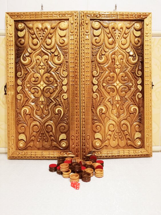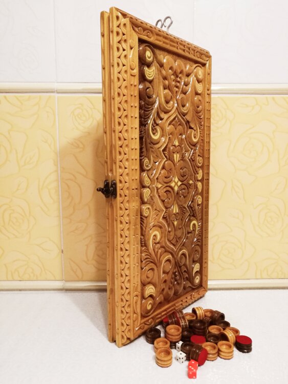 Нарды ореховые ручная резьба вырезанные со всех сторон и боков также и внутри нард на бортах есть резьба всё белое аппликация из кости нарды облагорожены чеканкой по дереву размер нард 55 на 55см фишки Двухцветный орех кубики кость. Поиграл и повесил на стенку украсит любой интерьер и создаст уютную обстановку а не будут пылится в углу Широкий выбор в наличии выбирайте. Пишите звоните телеграм ватцап ваибер и мы вам поможем выбрать эксклюзивные нарды ручной резьбы а не дешёвую поделку вырезанные на станке выдающую за ручную резьбу!