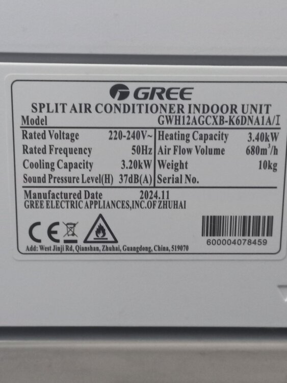 Мощность: 12000 BTU (Охлаждение/Обогрев 3500 Вт).