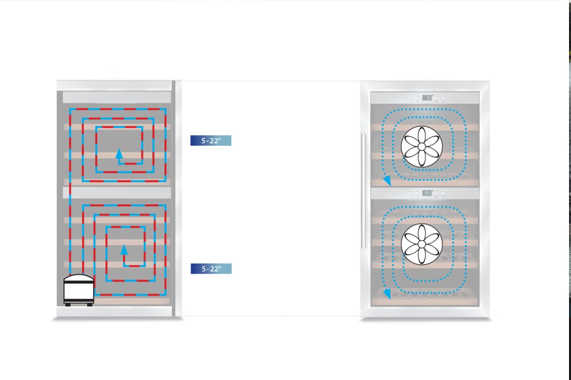 Две зоны охлаждения под разные температурные режимы, стекло УФ.