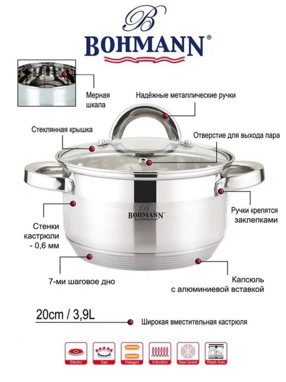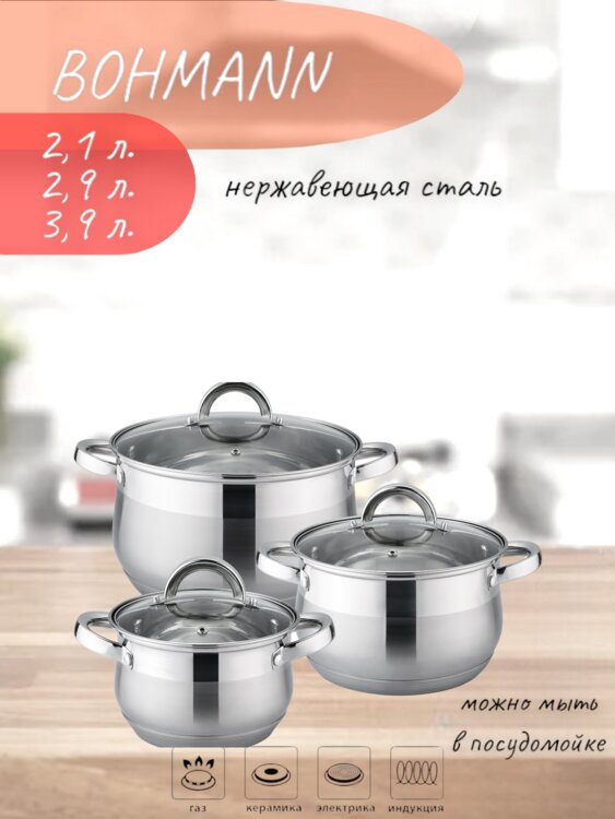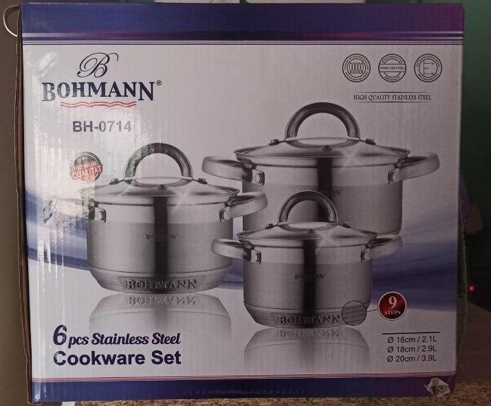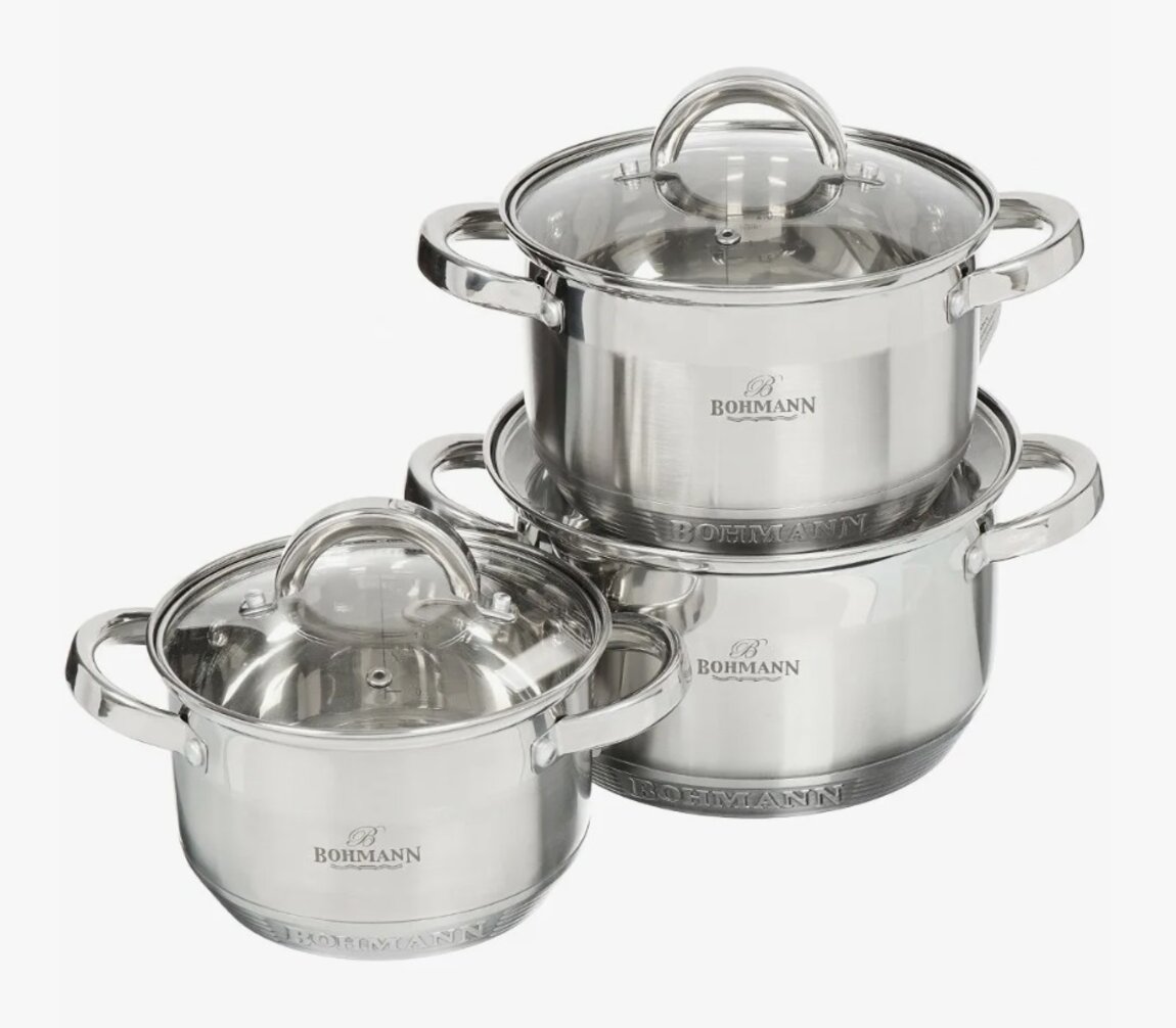 НАБОР кастрюль из нержавейки в подарочной коробке с ручкой