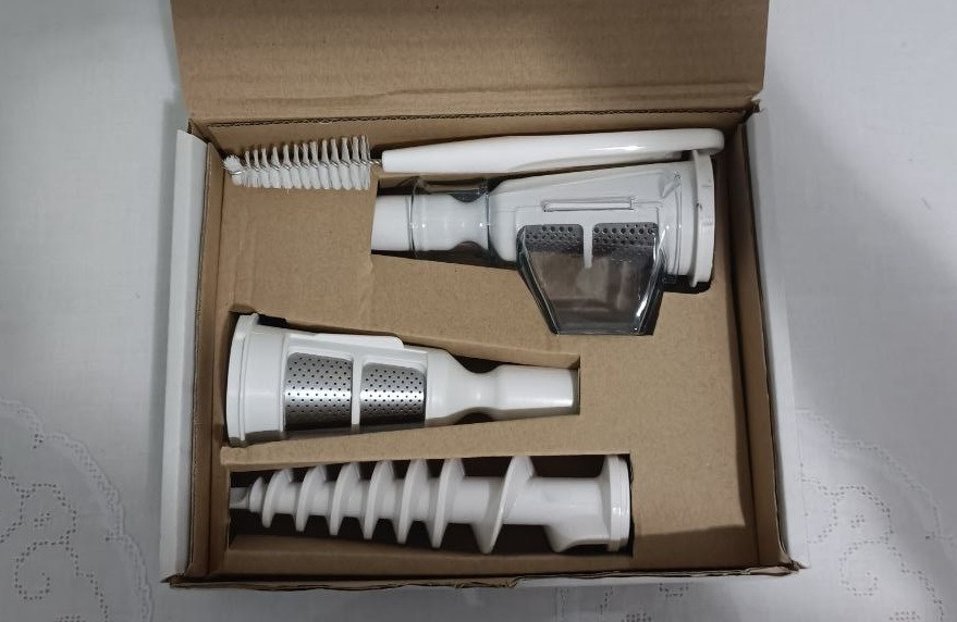 Дополнительно укомплектована насадкой-соковыжималкой (шнековой), предназначенной для получения сока в основном из мягких ягод и томатов, превращая мясорубку в универсальный прибор для заготовок.