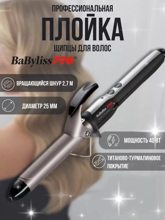 Плойка Babyliss -профессиональная плойка 25 мм, которая может быстро, легко и просто создавать локоны разной степени завивки.