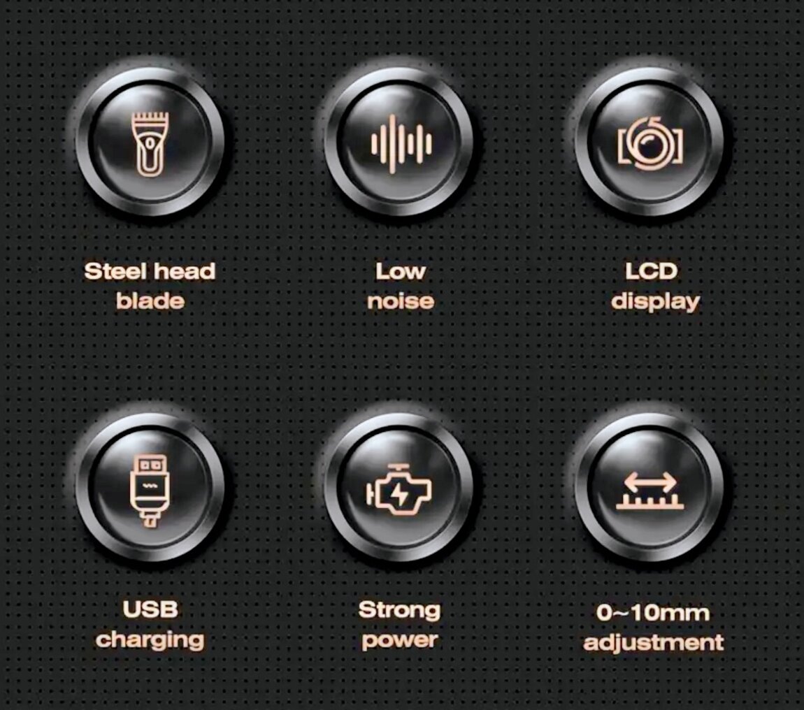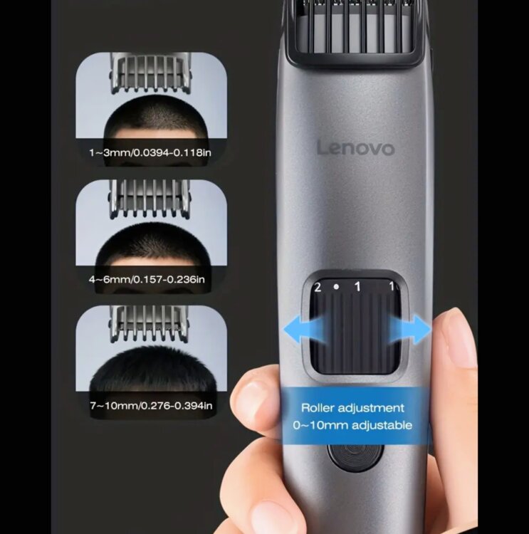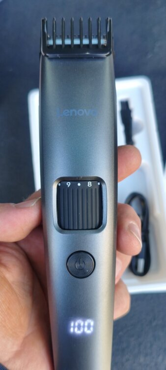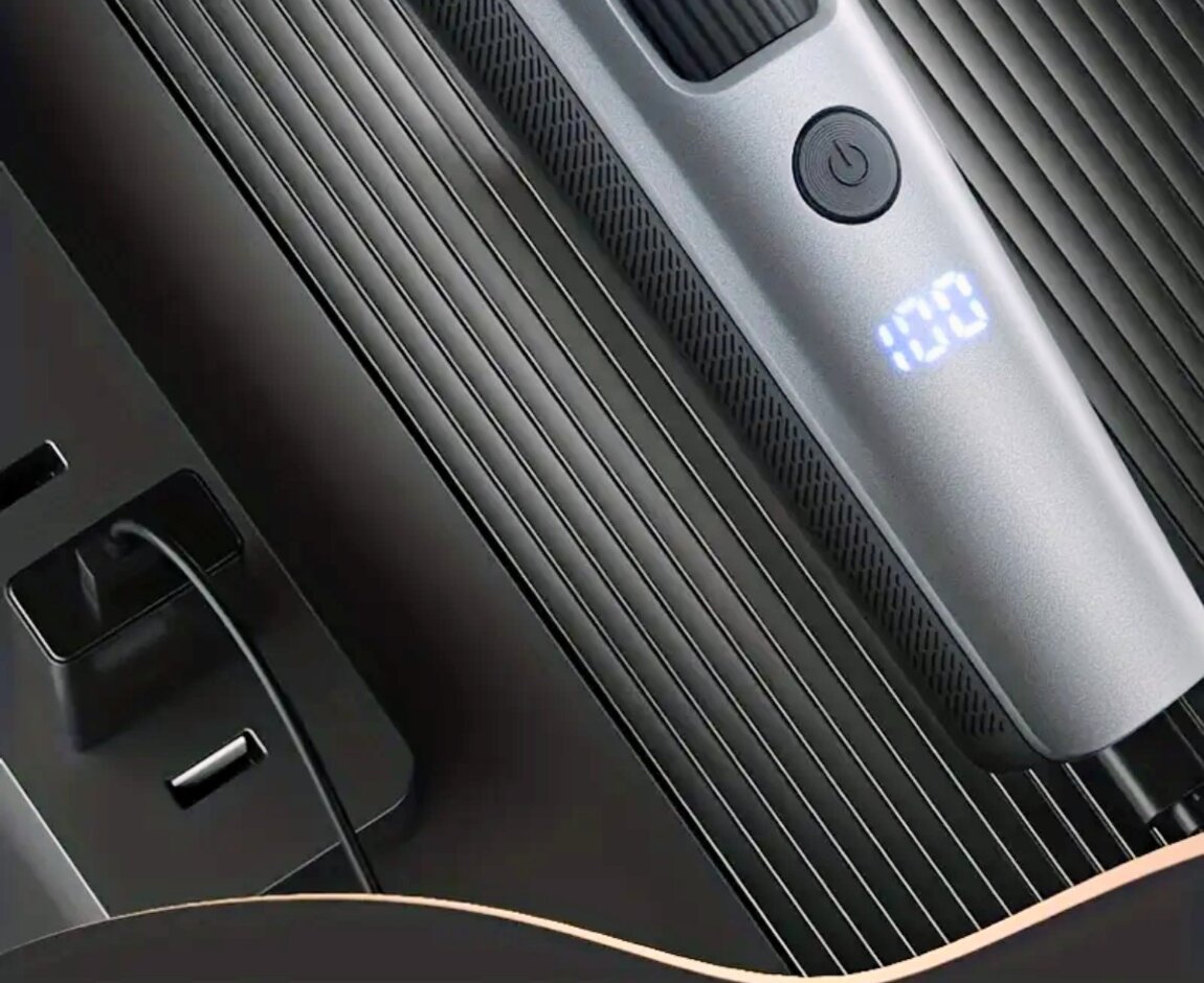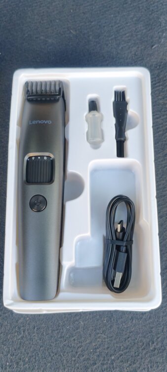 В упаковке. Перезаряжаемый, встроенный аккумулятор на 600мАч. Компактный размер, цифровой дисплей заряда. Без использования насадок, регулировка длины оставленных волос специальным кольцом с градацией. В комплекте зарядный кабель type-C, кисточка для чистки и масло для смазки лезвий.