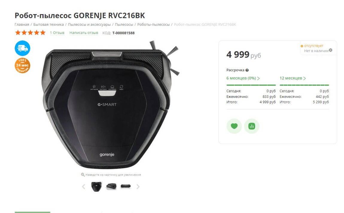 Продам робот-пылесос GORENJE RVC216BK