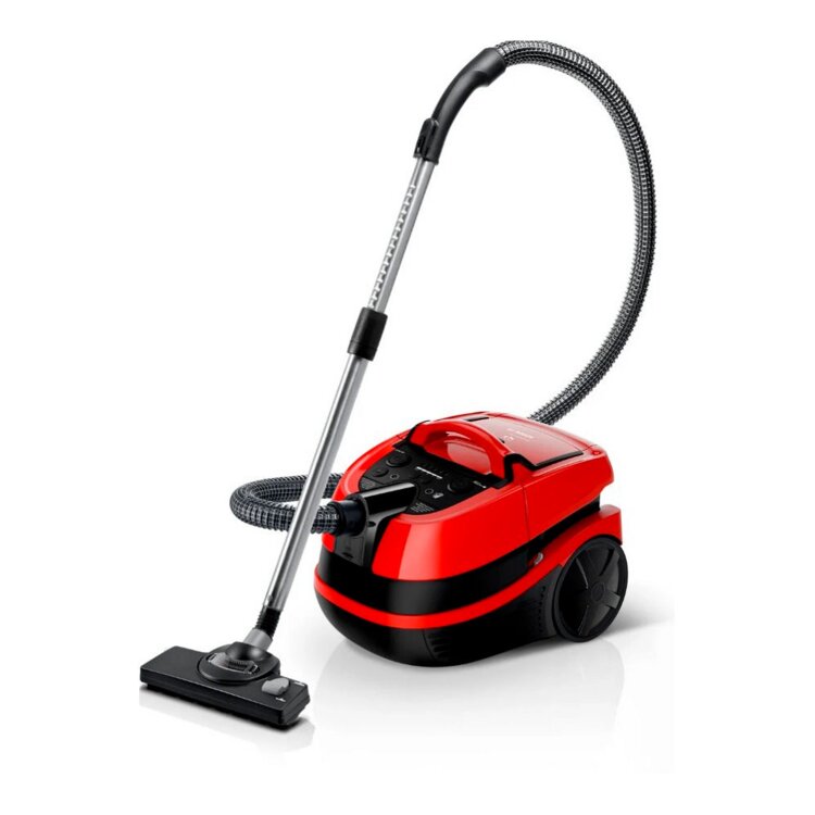 С помощью данного пылесоса легко можно осуществлять сухую и влажную уборку, а также он отлично справится с разлитой на пол водой, при этом дополнительно освежит воздух в помещении. С его помощью процесс уборки не забирает много времени, а его мощность в 2100 Вт позволяет качественно очистить все виды половых покрытий, как мягкие, так и твердые, ковры и мягкую мебель. Мощность для разных видов покрытия регулируется на корпусе при помощи специального переключателя.