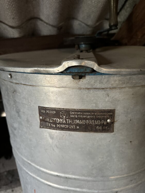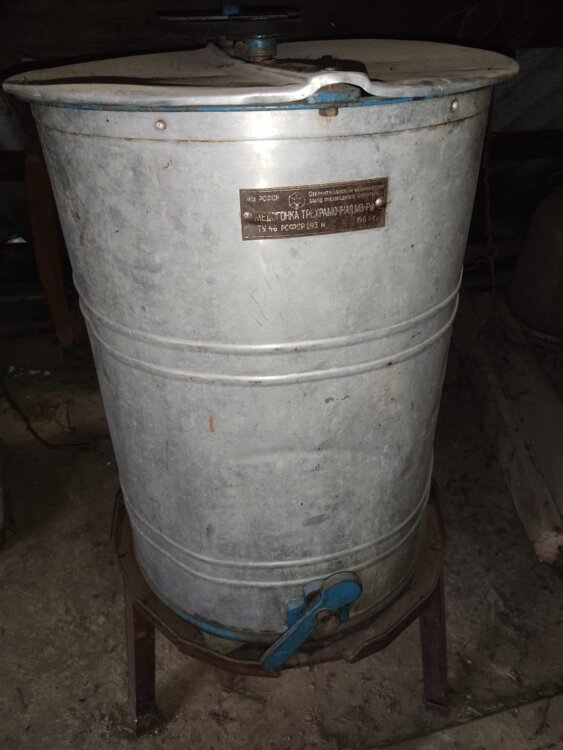 Медогонка заводская в отличном состоянии из алюминия, на подставке, производство СССР на 3 рамки. Бельцы
