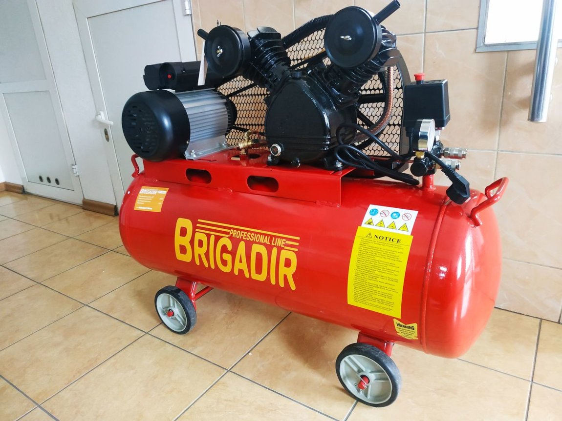Внимание Новое поступление Мощный производительный компрессор БригадирAC 10041 с однофазным электродвигателем в 3,6Квт предназначен для снабжения сжатым воздухом пневматического оборудования, применяемого в разных сферах профессиональной деятельности.