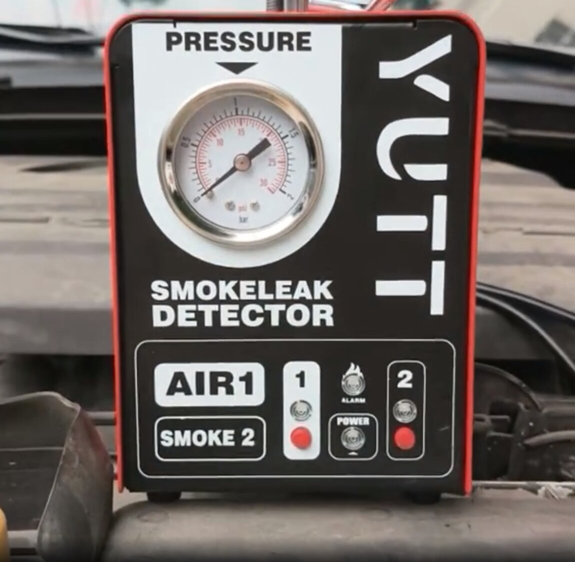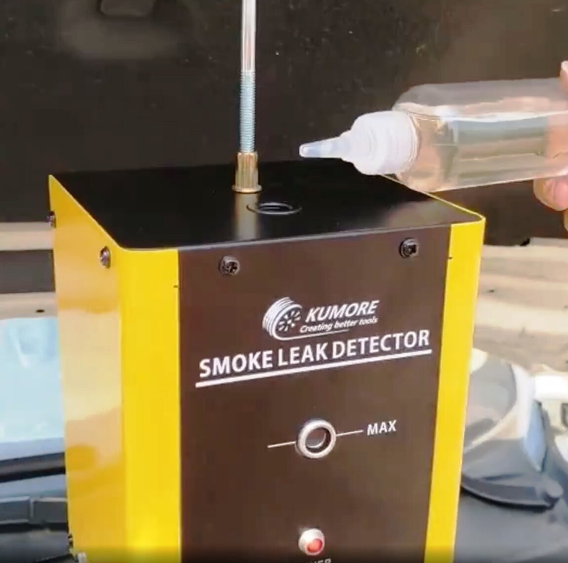 Дымогенератор для диагностики автомобиля оснащён встроенным компрессором и не требует внешнего источника воздуха. Для работы достаточно залить около 20 мл детского масла или глицерина.