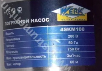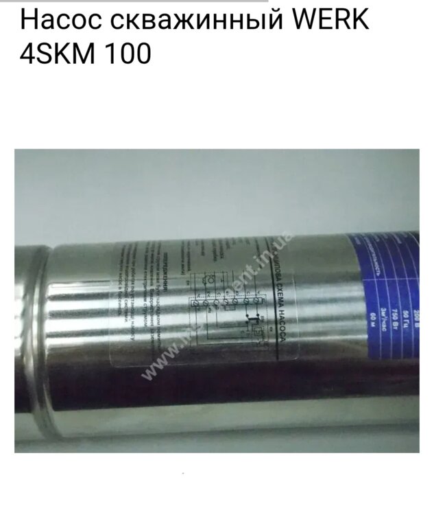 Продам Б/У погружной скважинный насос Werk 4SKM100 работает отлично. 750 Вт. 60 м. 3м³/час. 1200 руб.