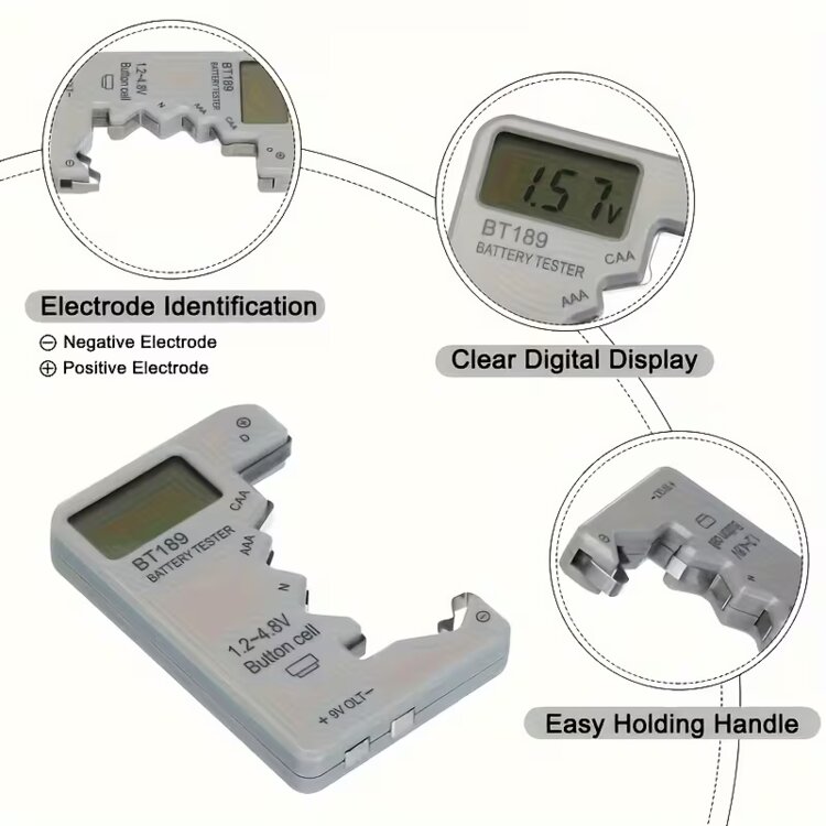 Цифровой тестер батареек, ABS черный, высокоточный тест напряжения с цифровым дисплеем, широкая совместимость для батареек 1,5 В, 3 В, 9 В, прочный и легкий, питание от батареек. Новый
