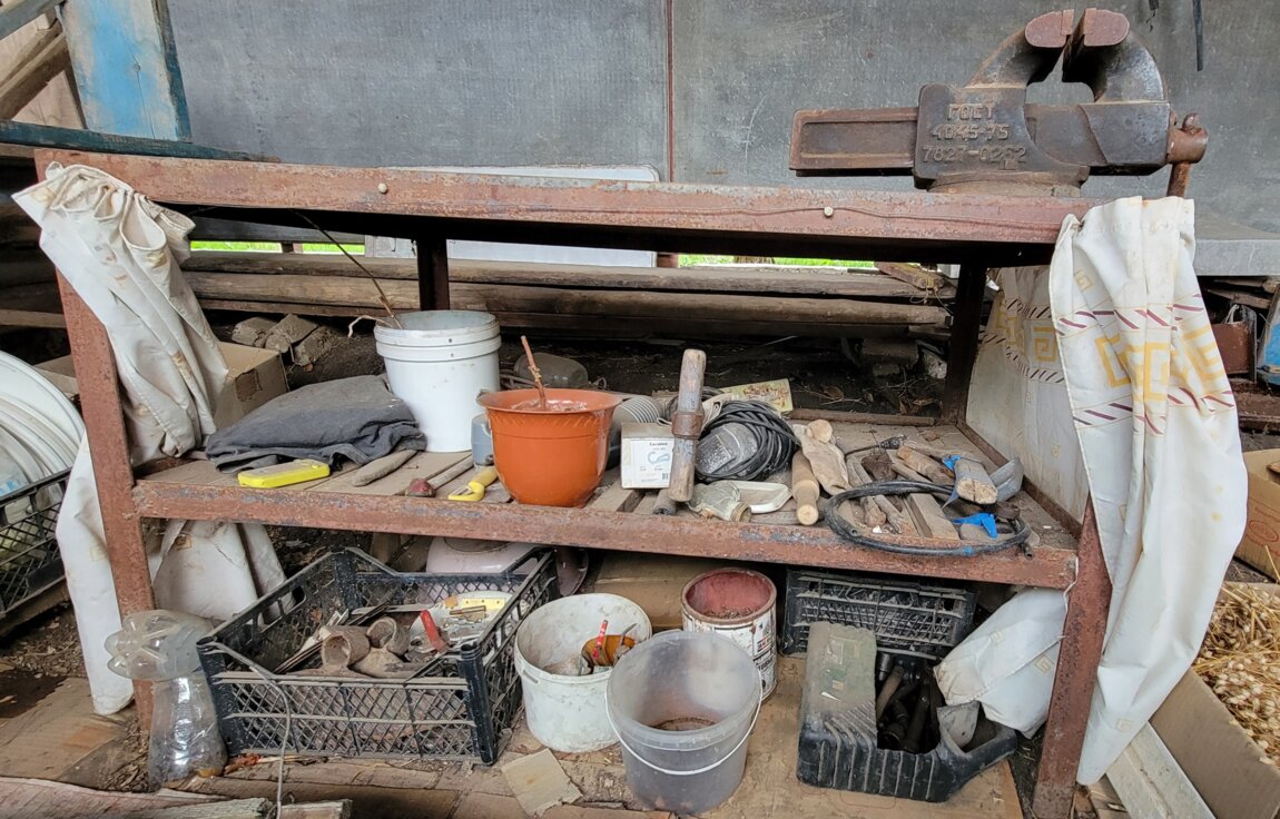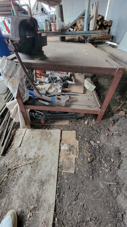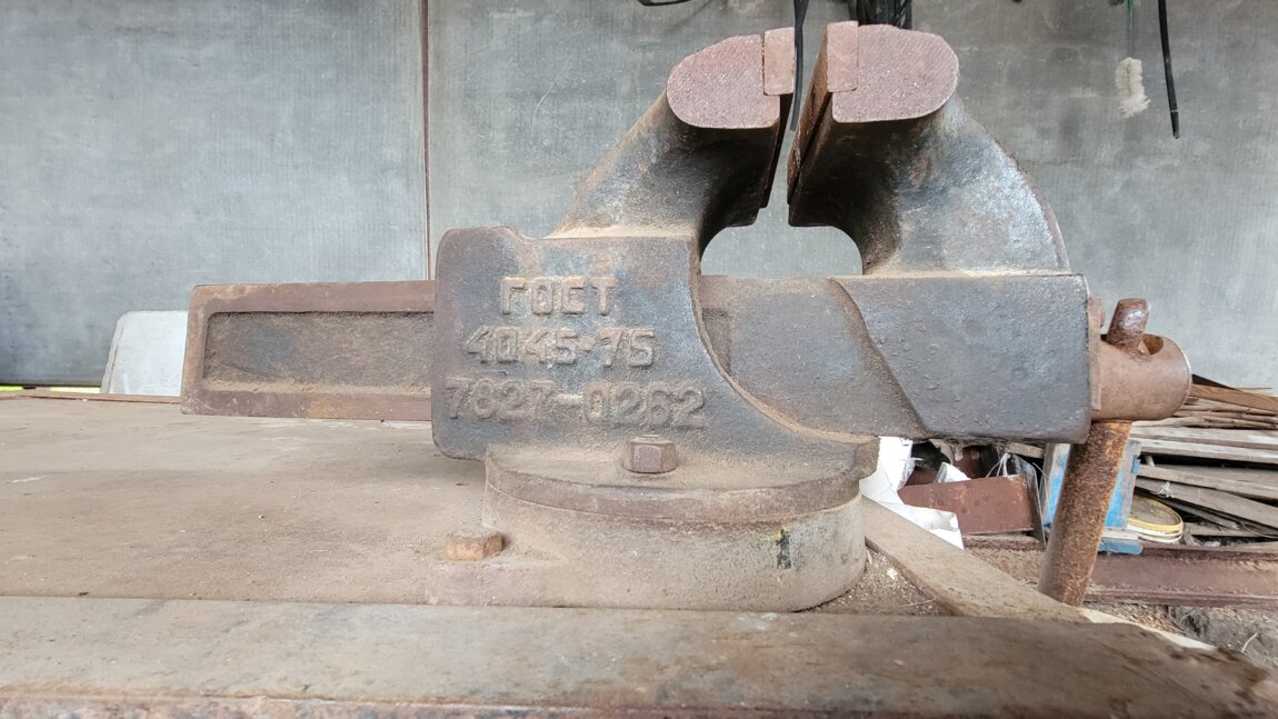 Продаются тиски времён СССР, установленные на прочном металлическом столе