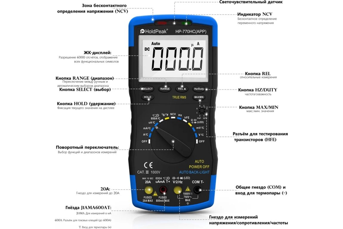 Мультиметр HoldPeak HP-770HC-APP-C Обновлённая версия.
