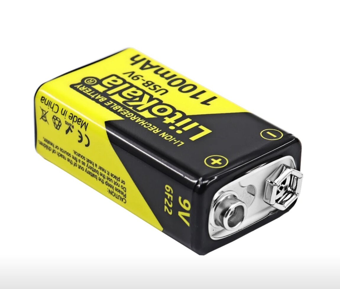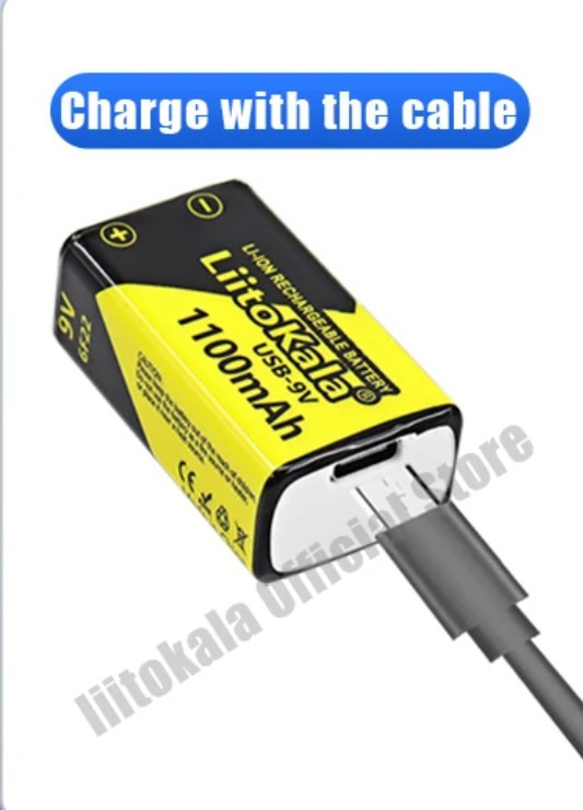 Емкость 1100мАч, 9V. Зарядка аккумулятора через встроенный на корпусе зарядный порт type-C обычным зарядным устройством для телефона. Индикация процесса зарядки и ее окончания.