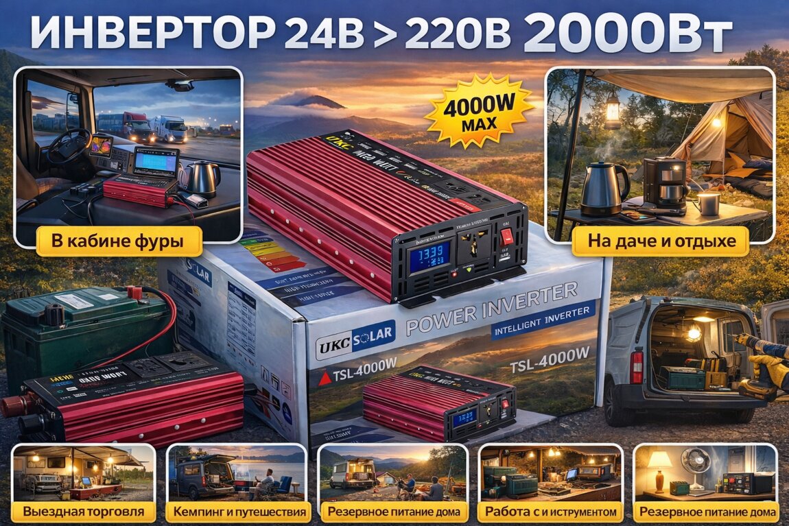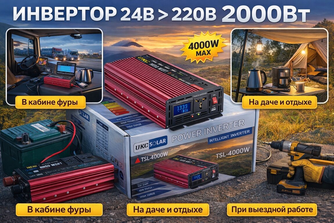Если у вас фура, грузовик или техника с системой 24V — вы можете получить полноценные 220В прямо в кабине.