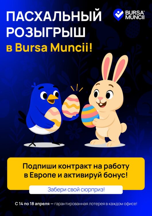 Подпишите контракт на работу в Европе на этой неделе — и автоматически активируй бонус и забери свой пасхальный сюрприз.