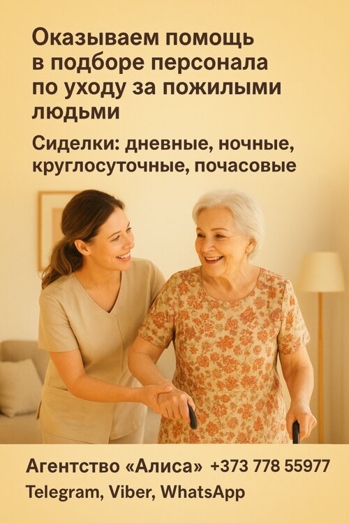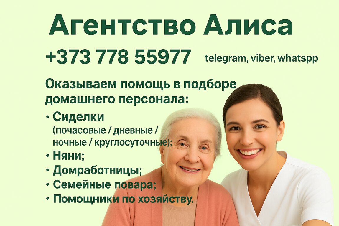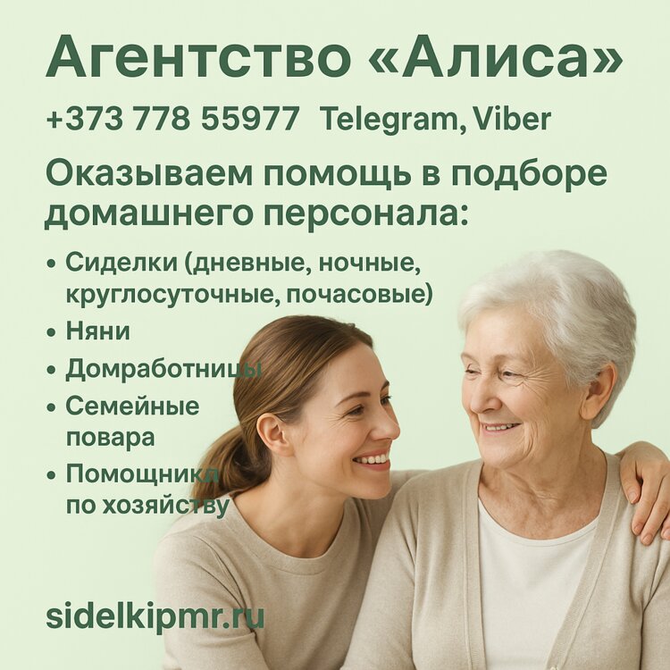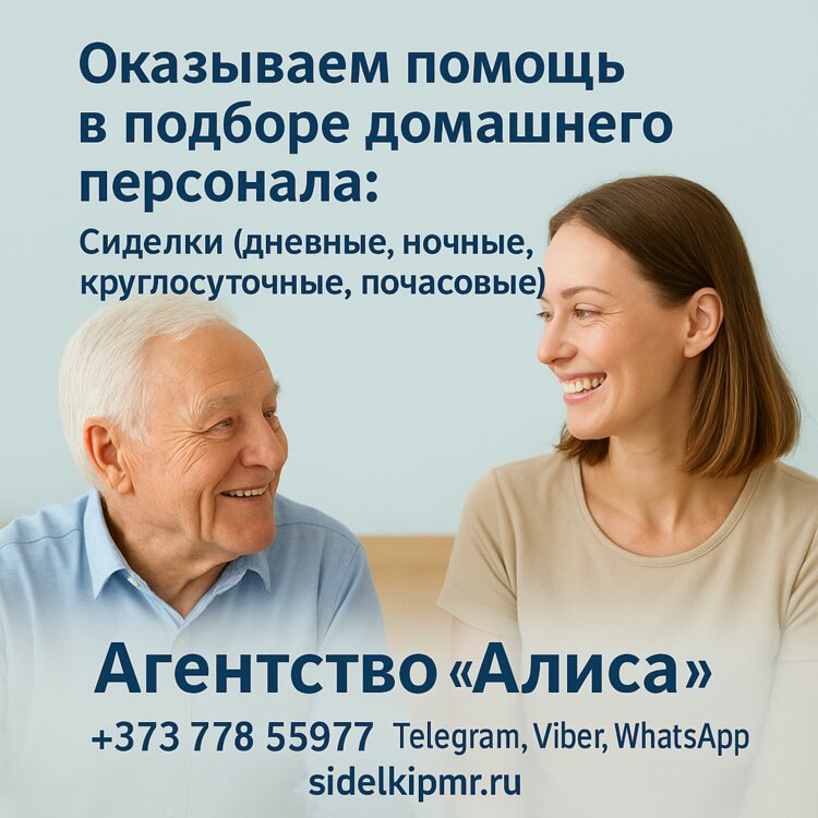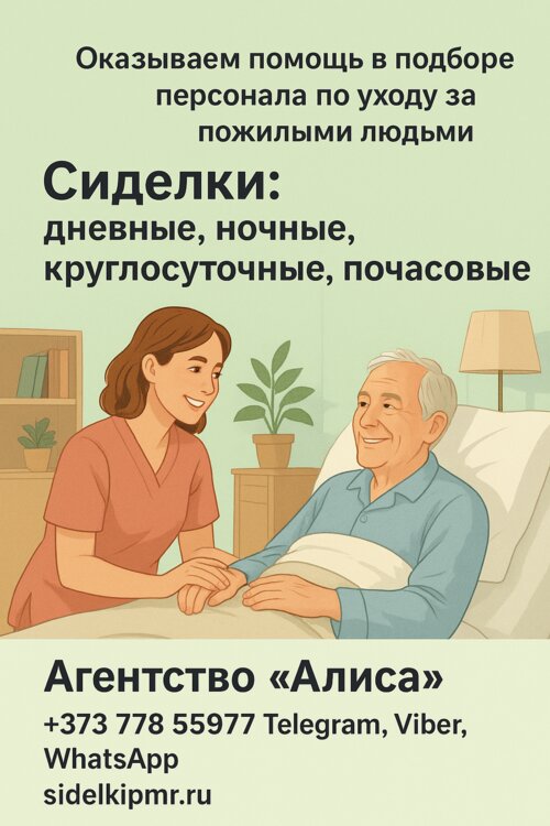 Также можем предложить варианты работы сиделкой в дневную или круглосуточную смену в Тирасполе, Бендерах, Рыбнице и других городах Приднестровья.