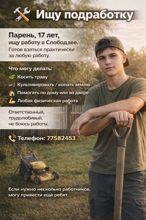 Парень, 17 лет, ищу подработку в Слободзее.