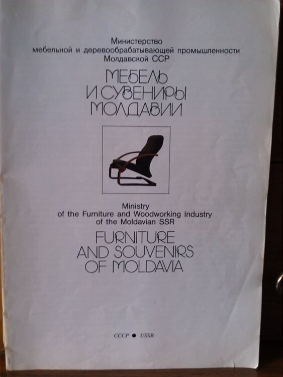 MD - Remarcabilul catalog din perioada URSS, Mobilier și suveniruri ale Moldovei a fost tipărit la sfârșitul anilor 80 în Finlanda. Și aceasta poate fi unica publicație care prezintă mobilierul din RSSM, dând o idee despre mobilier moldovenesc de înaltă calitate și de încredere. Conține diverse modele de mobilă, foarte reușită, actuală și astăzi, (schițe, proiecte în detaliu), pret - 5000 lei.