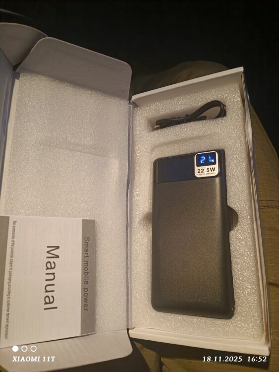 Новый пауэрбэнк аккумуляторного типа на 20000 mAh с функцией быстрой зарядки 22,5 W.