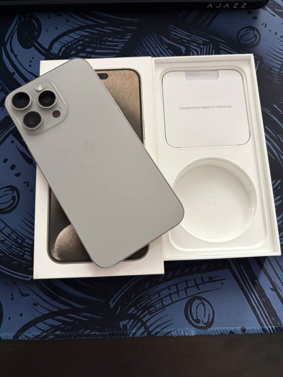 Продам iPhone 15 Pro Max 256GB Natural Titanium. Аккумулятор 89%, всю жизнь в чехлах и пленках. Идеальное состояние, полный комплект. Не вскрывался и в ремонтах не был.
