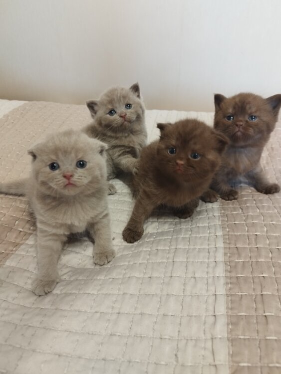 Продаются шикарные котята будут готовы к переезду к новому году есть 3ри мальчика и одна девочка прямоушка шоколадная 2 лиловых мальчика и один шоколадный на момент переезда будут проглистованы и обработаны приучены к туалету и когтеточки будут кушать натуральную еду и корм