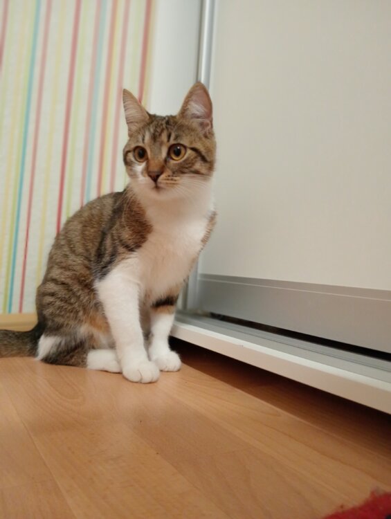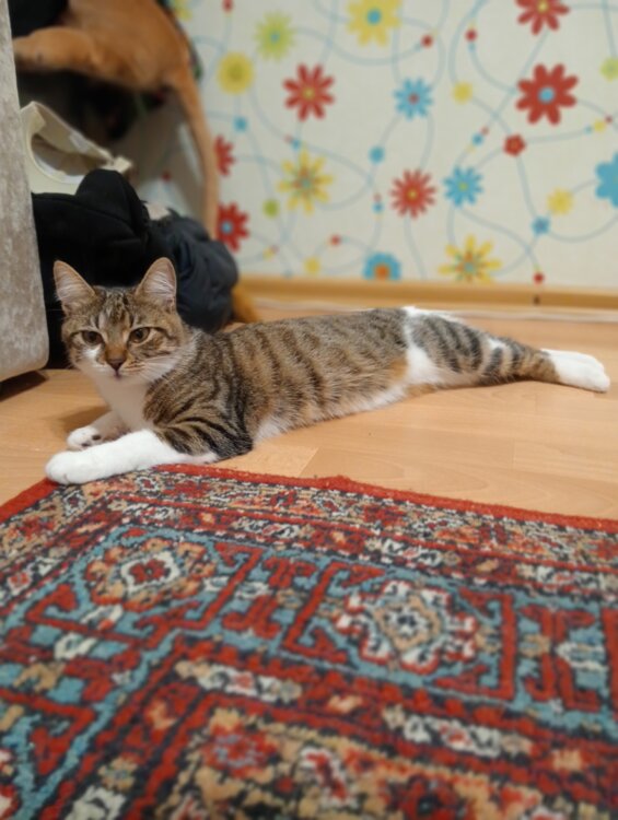 Отдам кошечку в связи с переездом, с собой к сожалению взять не можем ходит в лоток кушает практически всё очень ласково игривая добрая