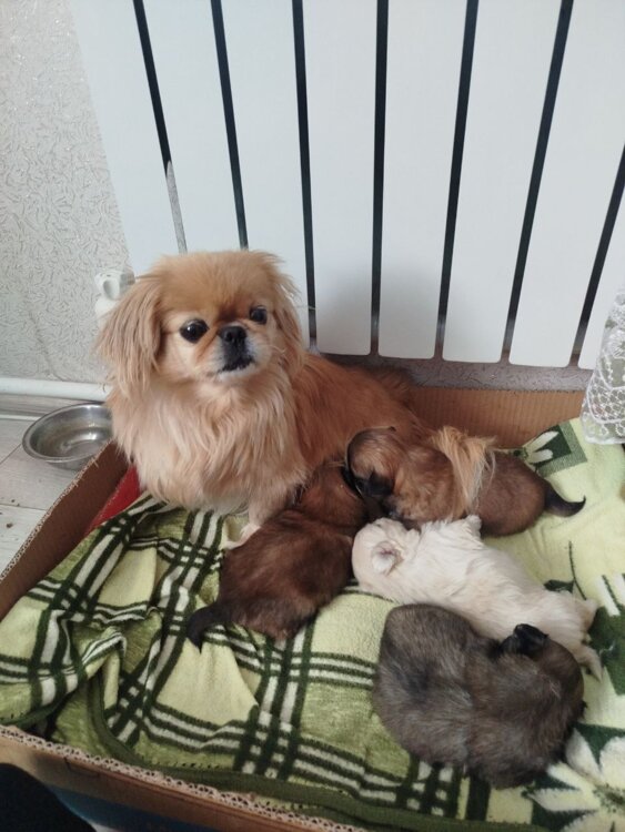 Щенки пекинеса, мальчик и девочка два месяца Первая прививка сделана.