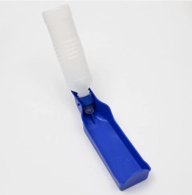 Продаю новую дорожную поилку для питомцев. Поилка состоит из бутылки и питьевой чаши. Материал — пластик. Объём бутылки 500 мл.